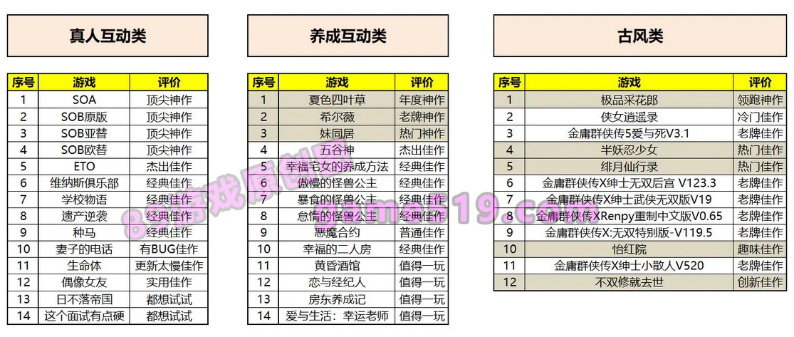 三、真人互动类、养成互动类、古风类