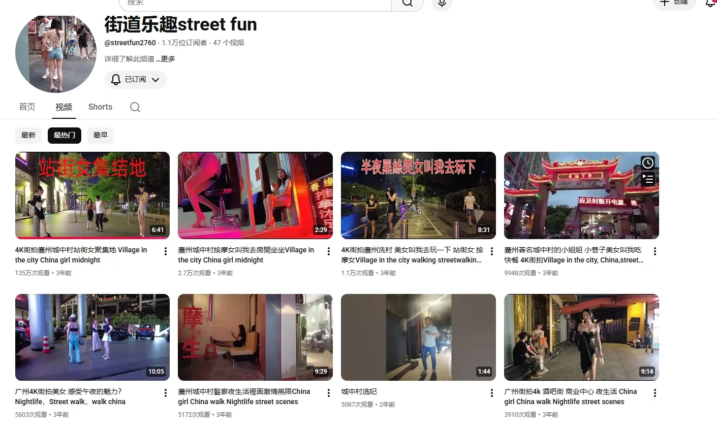 油管街拍UP主街道乐趣的街拍作品,主要地点是城中村之类的探索视频,感觉挺有探索的乐趣,为大家下载了播放量最高的11部视频,感兴趣的可以看看